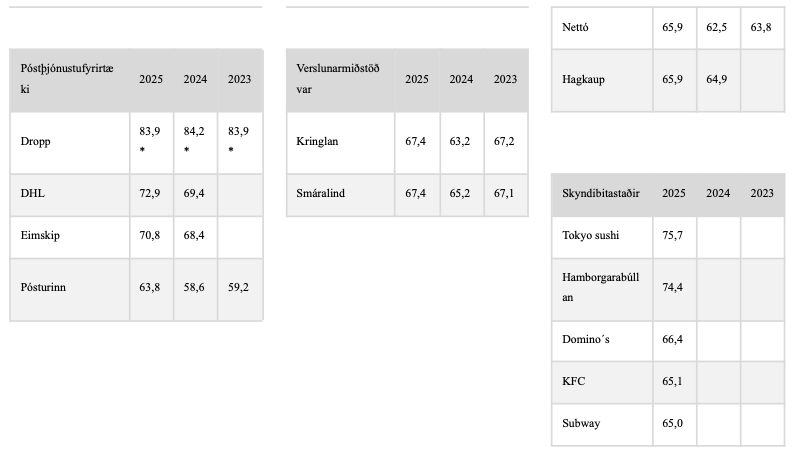 - Dropp með 83,9 stig meðal póstþjónustufyrirtækja