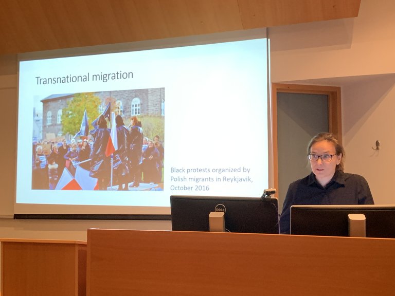 Anna Wojtyńska, PhD hélt fyrirlestur „Temporary nature of migrant work: reality or myth?“ þar sem hún fjallaði um pólska farandverkamenn á Íslandi, flutningamynstur þeirra og þá þætti sem hafa áhrif á ákvörðun einstaklinga um að koma til landsins, dvelja hér eða snúa til baka til Póllands. Hún tók sérstaklega fyrir flutninga sem hugsaðir eru til skamms tíma og hvernig sú hugmynd getur haft afleiðingar á aðlögun farandverkamanna á vinnumarkaðinum og í samfélaginu öllu.