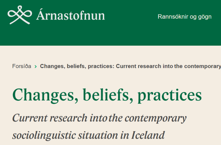 A total of 20 presentations. There are 5 thematic sessions: Ideologies and metalinguistic discourses; Linguistic minorities; Lifespan changes, attitudes and regional pronunciation; English in Iceland; Norms and cultural bias. The conference is in English. It is open to the public, free of charge, and no registration is required.
