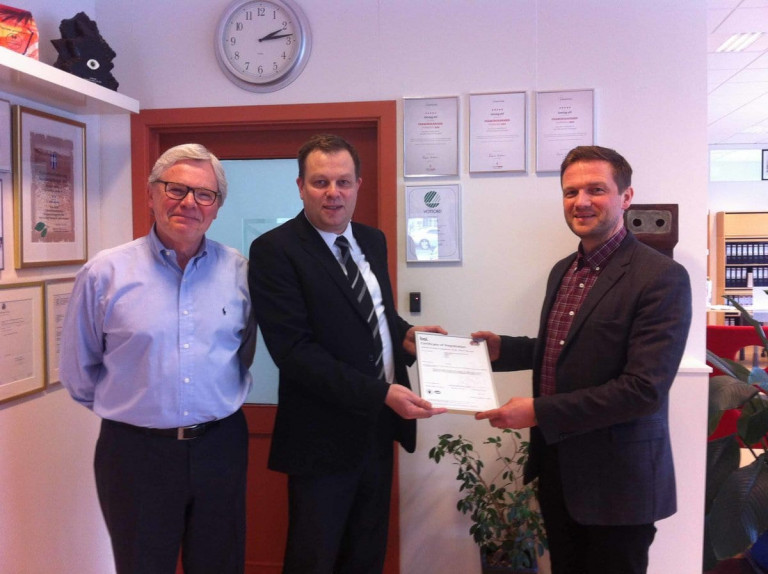 Myndatexti: Frá vinstri: Ingvar Hjálmarsson, gæðastjóri Umslags, Árni H. Kristinsson, framkvæmdastjóri BSI á Íslands og Sölvi Sveinbjörnsson, framkvæmdastjóri og eigandi Umslags.
