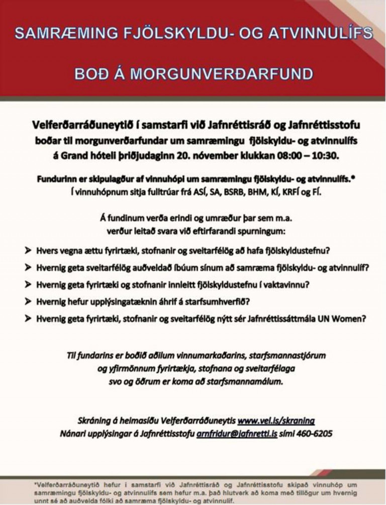 Fundurinn er skipulagður af vinnuhópi um samræmingu fjölskyldu- og atvinnulífs.