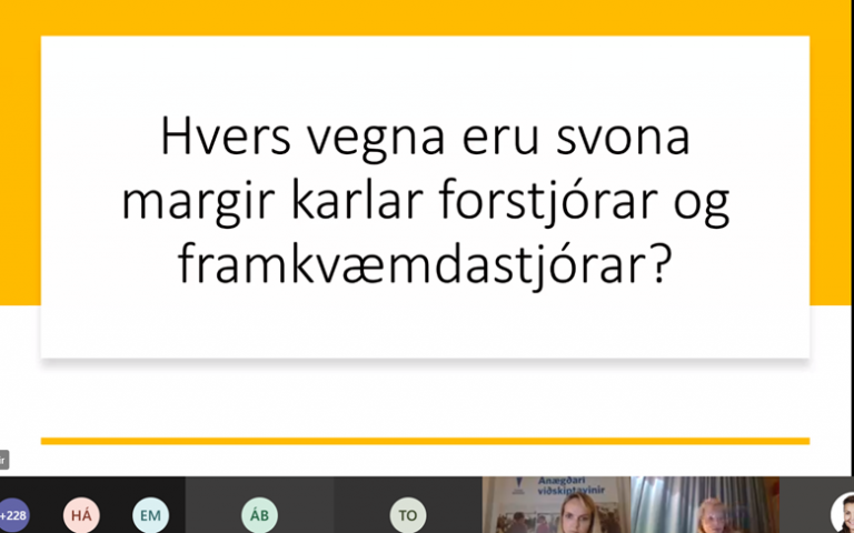 Markmið fundarins var að varpa ljósi á ástæðurnar sem gætu legið að baki og hvernig við getum saman unnið meðvitað að auknu jafnrétti þannig að konur og karlar raðist með jafnari hætti í stjórnendastöður.