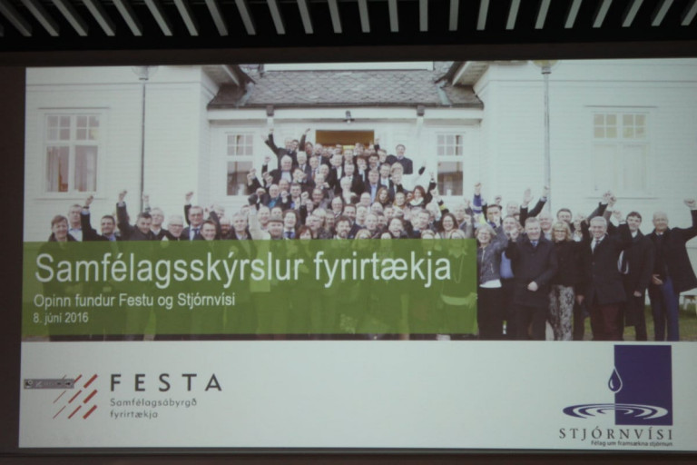 Í morgun var haldinn á Icelandar Hótel Natura fjölmennur fundur á vegum Festu og faghóps um samfélagsábyrgð fyrirtækja þar sem markmiðið var að kynna samfélagsskýrslur fyrirtækja og ræða hvernig mæla megi árangur í umhverfis- og samfélagsmálum. Fundarstjóri var Soffía Sigurgeirsdóttir hjá KOM. Þorsteinn Kári Jónsson, Marel, varaformaður Festu útskýrði hvað felst i samfélagsskýrslu, hvað á hún að innihalda og hver er lesandinn, þ.e. fyrir hvern er skýrslan. Þá fjallaði Sigrún Ósk Sigurðardóttir, aðstoðarforstjóri ÁTVR um samfélagsskýrslu ÁTVR 2016. Skýrslan er í dag alfarið í rafrænu formi. Hún þarf að falla að heildarstefnunni og samsama sig heildaraðilanum. Í fyrsta skipti spurði ÁTVR í vinnustaðagreiningu hvort starfsfólk teldi sig þekkja áherslur Vínbúðarinnar á sviði samfélagsábyrgðar og voru starfsmenn almennt mjög sammála því.