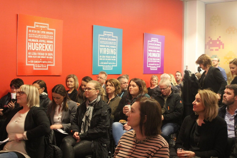 Hvert sæti var skipað þegar Ingibjörg Kristinsdóttir þjónustuhönnuður hélt erindi sitt „Frá innsýn til aðgerða“ í Hörpu. Hún leiddi þar gesti í gengum skemmtilega blöndu af fræðum og reynslu.