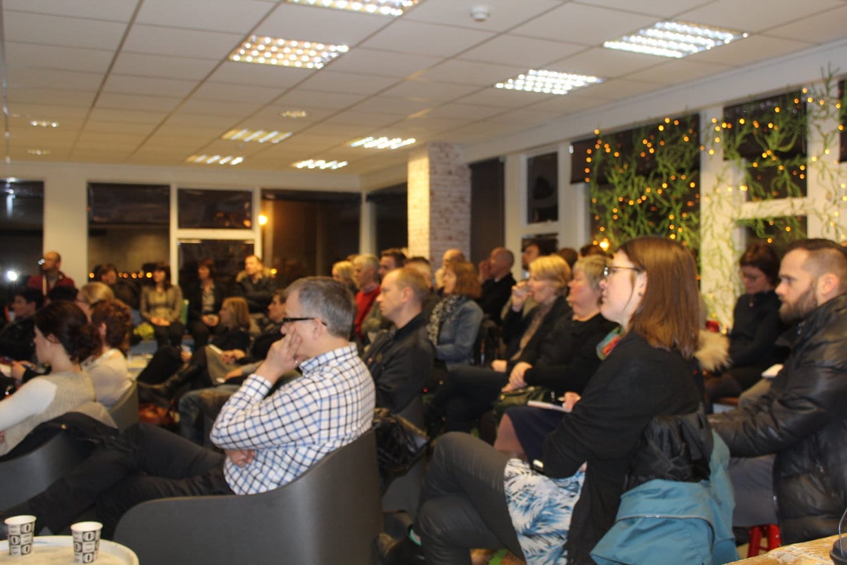 Ingibjörg fékk fjölmargar spurningar og í lokin spjölluðu gestir og nutu samverunnar í fallegu útsýni Björtulofta.