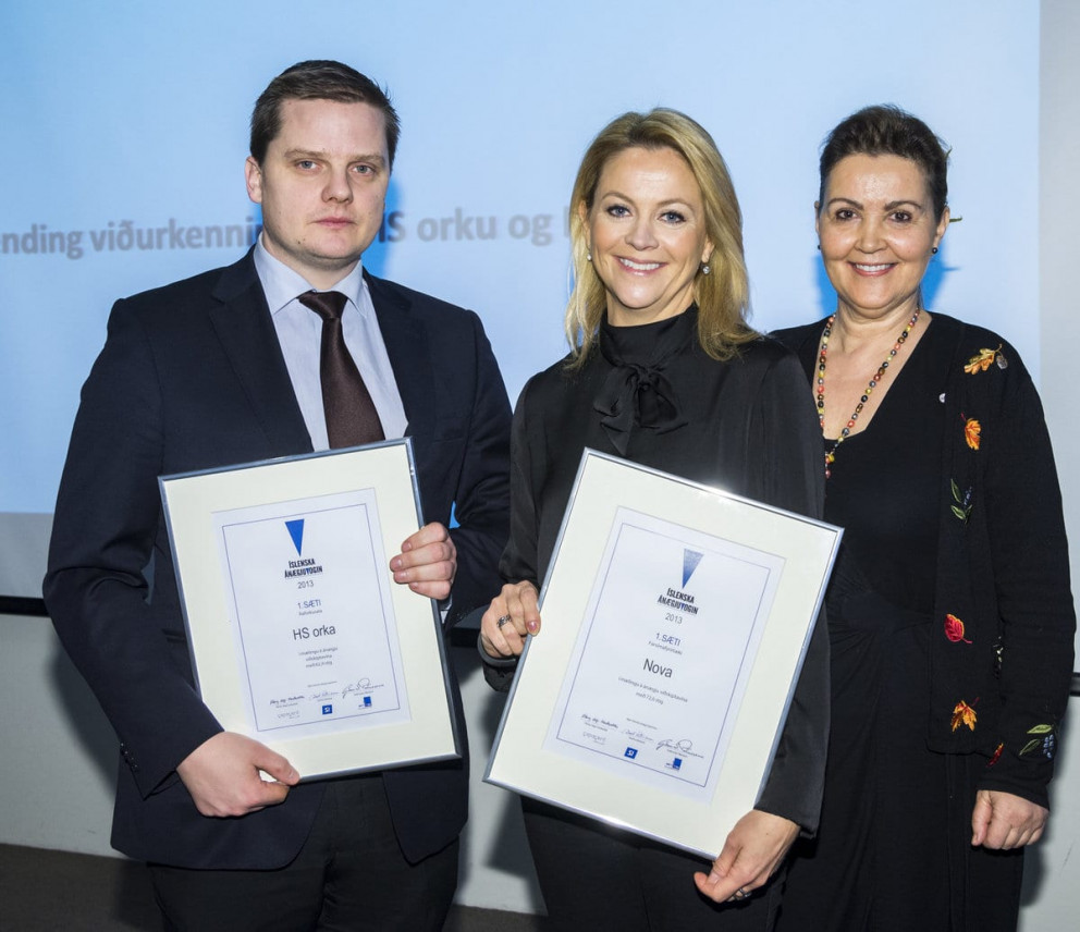 hæstu einkunnina séu að jafnaði ánægðari en þess með næst hæstu einkunnina. Í ár var því afhent viðurkenning í tveimur flokkum; raforkumarkaði þar sem HS orka fékk viðurkenningu með 62,9 stig af 100 mögulegum og farsímamarkaði þar sem Nova var með marktækt hæstu einkunnina, 72,6 stig. Ekki voru afhentar viðurkenningar á bankamarkaði, tryggingamarkaði, í flokki olíufélaga eða fyrir sigurvegara ársins, en ÁTVR mældist með hæstu einkunnina í ár, 74,1, sem reyndist ekki tölfræðilega