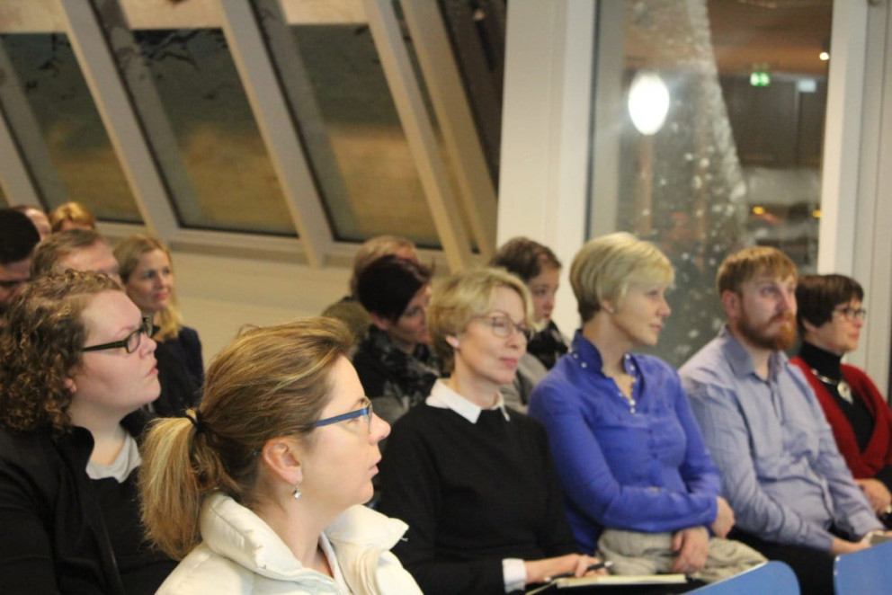 Hvert sæti var skipað þegar Ingibjörg Kristinsdóttir þjónustuhönnuður hélt erindi sitt „Frá innsýn til aðgerða“ í Hörpu. Hún leiddi þar gesti í gengum skemmtilega blöndu af fræðum og reynslu.