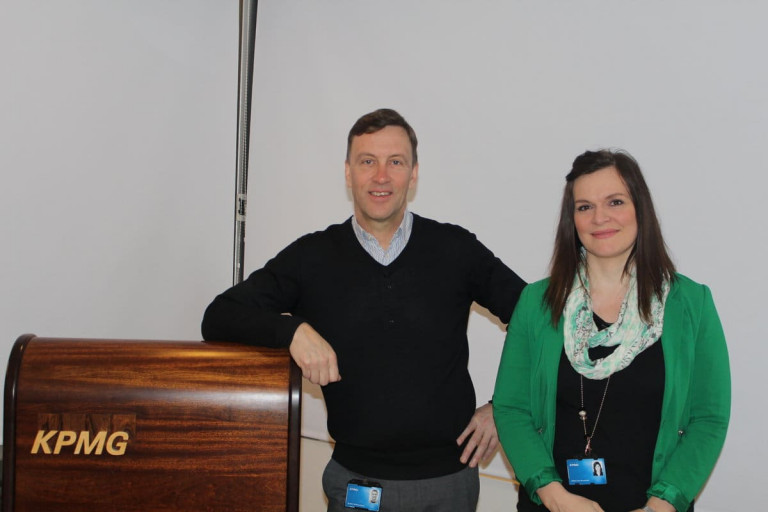 KPMG er alþjóðleg fyrirtæki sem þjónustar innlenda sem erlenda viðskiptavini. Einnig fara starfsmenn milli landa ef þurfa þykir. Alþjóðlegt samstarf veitir aðgang að því nýjasta og besta sem gerist í faginu á hverjum tíma. Rækilegt gæðaeftirlit er innan KPMG sem tryggir hágæðaþjónustu frá einu landi til annars. Í dag vinna hjá fyrirtækinu 174þús. manns þar af 89þús. í Evrópu. KPMG er nokkurs konar fræðslustofnun, ráðgjöf við viðskiptalífið. KPMG sinnir frumkvöðlum. Starfsmenn eru ábyrgir á sinni endurmenntun ásamt stjórnendum félagsins og ber hverjum og einum að fylgjast með og meta reglulega eigin þörf fyrir endurmenntun. Þekkingarmiðlun er einn af lykilþáttum í starfseminni. Þetta þýðir að allir þeir sem afla sér þekkingar á vegum félagsins eru skuldbundnir til að miðla henni til samstarfsmanna og reynt er að skapa umhverfi og viðhorf þekkingarsamfélags í starfsemi félagsins. Árið 2015 var 3,6% af allri skráðri vinnu varið til fræðslumála KPMG nýtir 9,7 daga á mann í fræðslumál Allir starfsmenn skrá fræðslu í menntabrunn KPMG. Þegar starfsmenn hætta geta þeir skráð úr grunninum þá fræðslu sem þeir hafa sótt. Endurskoðendur þurfa að ná ákveðnum fjölda til að viðhalda réttindum sínum og kerfið var útfært á alla starfsmenn. Gott er að setja slíkt í ferilskrána sína. Á hverju ári er gerð fræðsluáætlun. Starfsmenn sækja ekki mikið út á við, meira er um að starfsmenn fari þangað til að kenna. Varðandi námskeiðin þá er sett upp tafla: 1. Hvenær 2. Lengd 3.Heiti námskeiðs 4.Kennarar, 5. Fyrir hverja. Næstum allir starfsmenn fara á Trainer Trainer þ.e. þeir læra að deila þekkingu og kenna öðrum. Sá lærir mest sem kennir. En hvernig lærum við? 10% af því sem við lærum gerist á viðburðum í menntunarkerfi. 20% höfum við tekið í gegnum samstarf. 70% af því sem við lærum kemur í gegnum reynsluna við að vinna og fá færni. Fjarkennsla er mjög mikið notuð til að þjálfa starfsmenn út á landi. Símafundir, fjarfundir, virtual classroom. Skipulögð námskeið eru þannig að hægt er að fara inn á þau þegar hentar rafrænt. Þegar starfsmenn byrja hjá KPMG þurfa þeir að fara á 5 námskeið sem snúa að öryggi, trúnaðargögn, öryggi starfsmanna o.fl. þau eru alltaf rafræn. Einnig eru svo kölluð Google námskeið, þau hitta beint í mark því hægt er að taka þau hvenær sem er.(hvað, hvar og hvenær). Rafræn námskeið eru frábær lausn því þú sérð hve lengi viðkomandi er að taka námskeiðið, hvar hann eyðir löngum tíma, þú getur staðfest að viðkomandi hafi lesið öryggisupplýsingar því hann þarf að svara verkefnum og videoklippum. Í dag er Google kynslóðin komin inn á vinnustaði. Þau vilja allt um leið og í litlu mæli. Háskólanámið breytist og vinnustaðalærdómur einnig. Kennarar frá KPMG sem kenna í HÍ og HR setja allt efni inn á vefinn, nemandinn þarf ekki endilega að mæta í tímann, hann getur nýtt sér fyrirlesturinn þegar honum hentar.