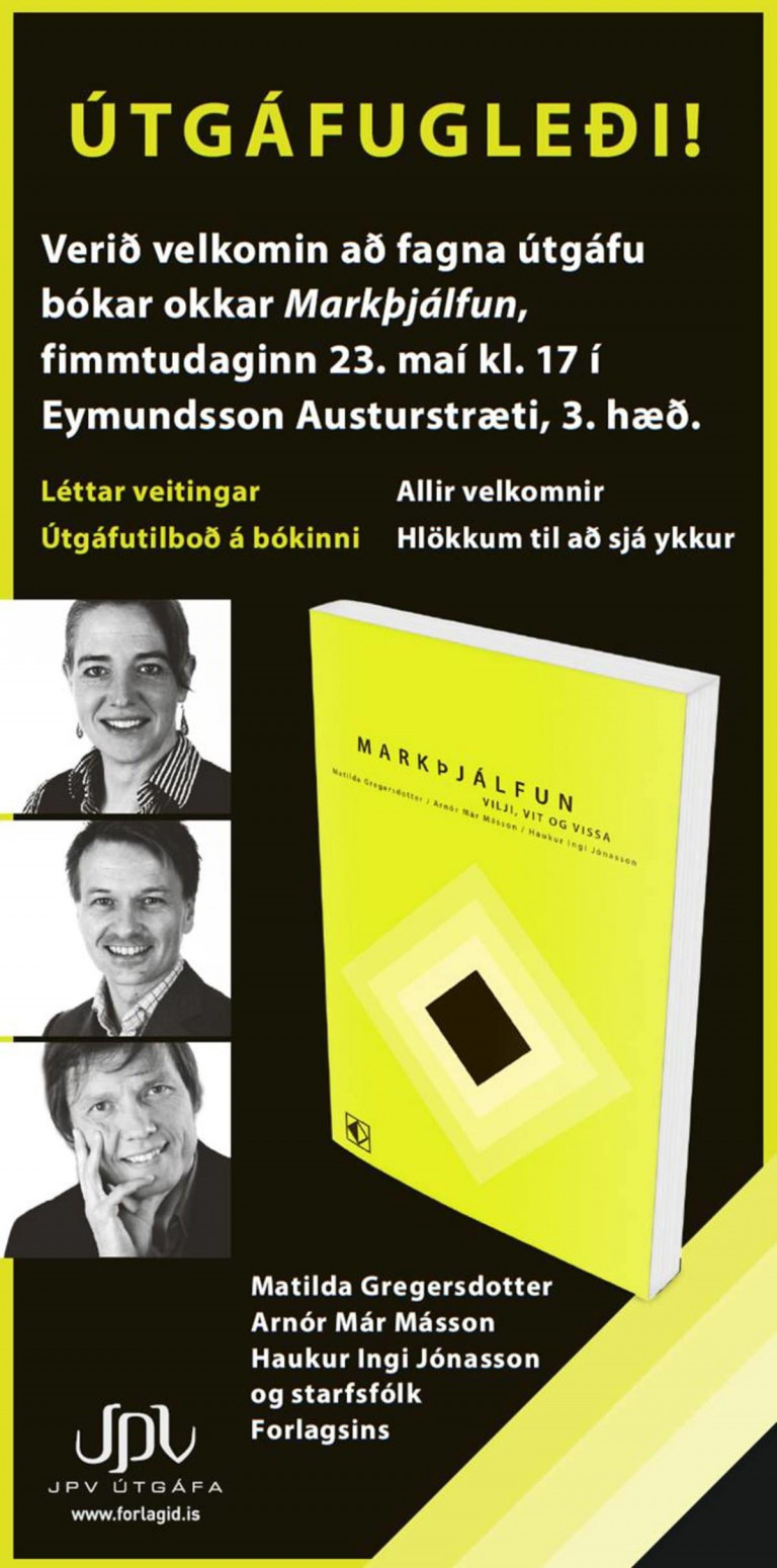 Stjórnvísifélögum er boðið í útgáfugleði vegna fyrstu íslensku bókarinnar um Markþjálfun. Þau Arnór Már Másson, Matilda Gregersdotter ásamt Hauki Inga, eru höfundar bókarinnar og bjóða þau ykkur velkomin í Eymundsson í dag, fimmtudag, kl. 17 í Eymundsson í Austurstræti.