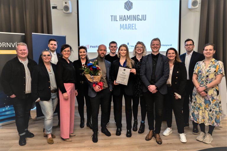 Hátæknifyrirtækið Marel starfar á alþjóðlegum markaði og endurspeglar upplýsingagjöf félagsins þann veruleika. Innan Marel hefur farið fram greining á hvaða sjálfbærnimælikvarðar eru viðeigandi fyrir þeirra atvinnugrein, svokölluð mikilvægisgreining. Það er mat dómnefndar að skýrslan sýni hvernig mikilvægisgreiningin nýtist í upplýsingagjöf og að meiri losun gróðurhúsalofttegunda í sjálfbærniskýrslu sé ekki endilega verra, heldur endurspegli aukna áherslu á betri gögn sem svo verða tól til skilvirkari ákvarðana.