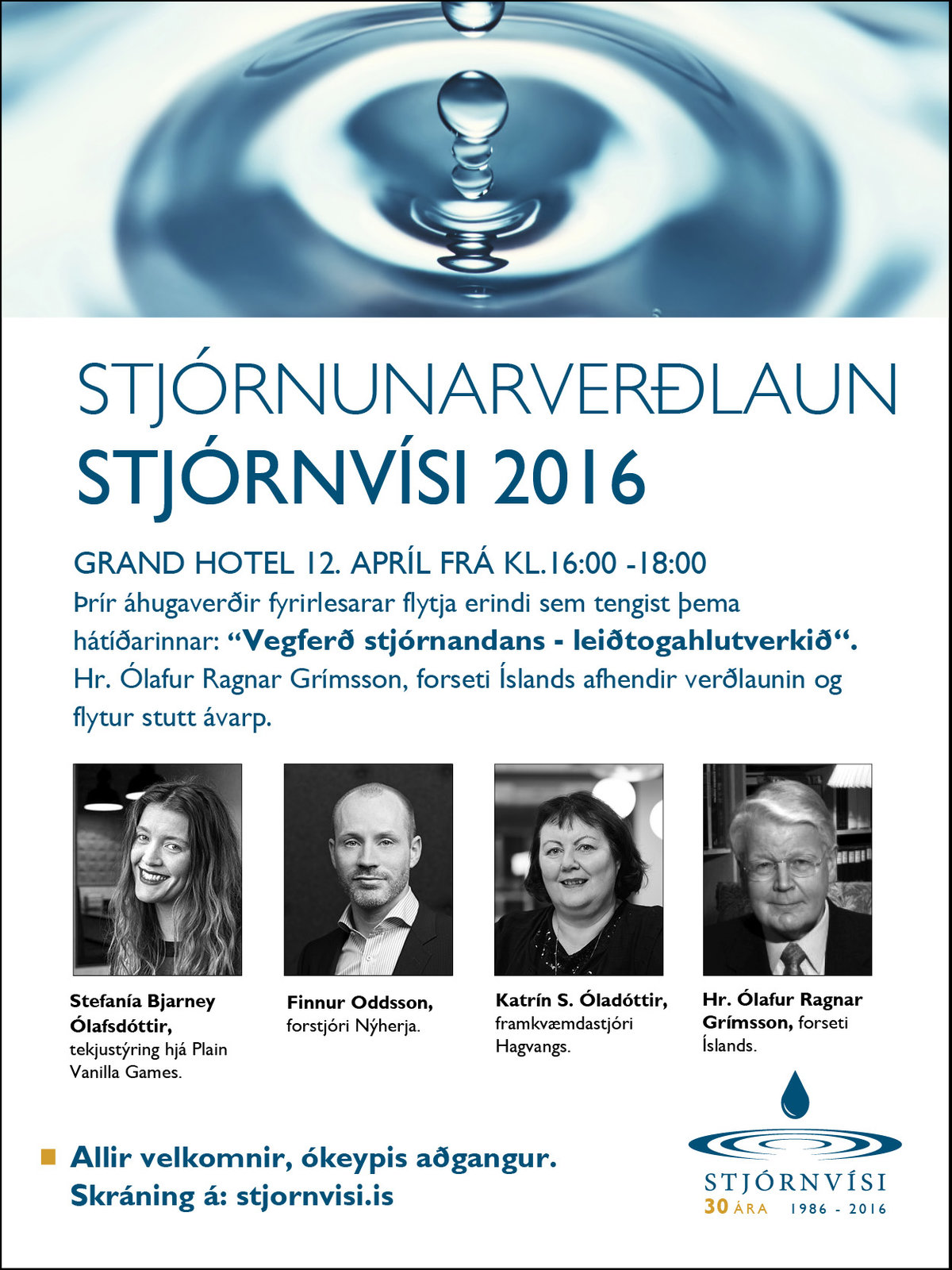 Í tilefni afhendingar Stjórnunarverðlauna Stjórnvísi 2016 hinn 12.apríl nk. býður Stjórnvísi til hátíðarmóttöku á Grand hótel, Hvammi, kl. 16.00 til 18.00.