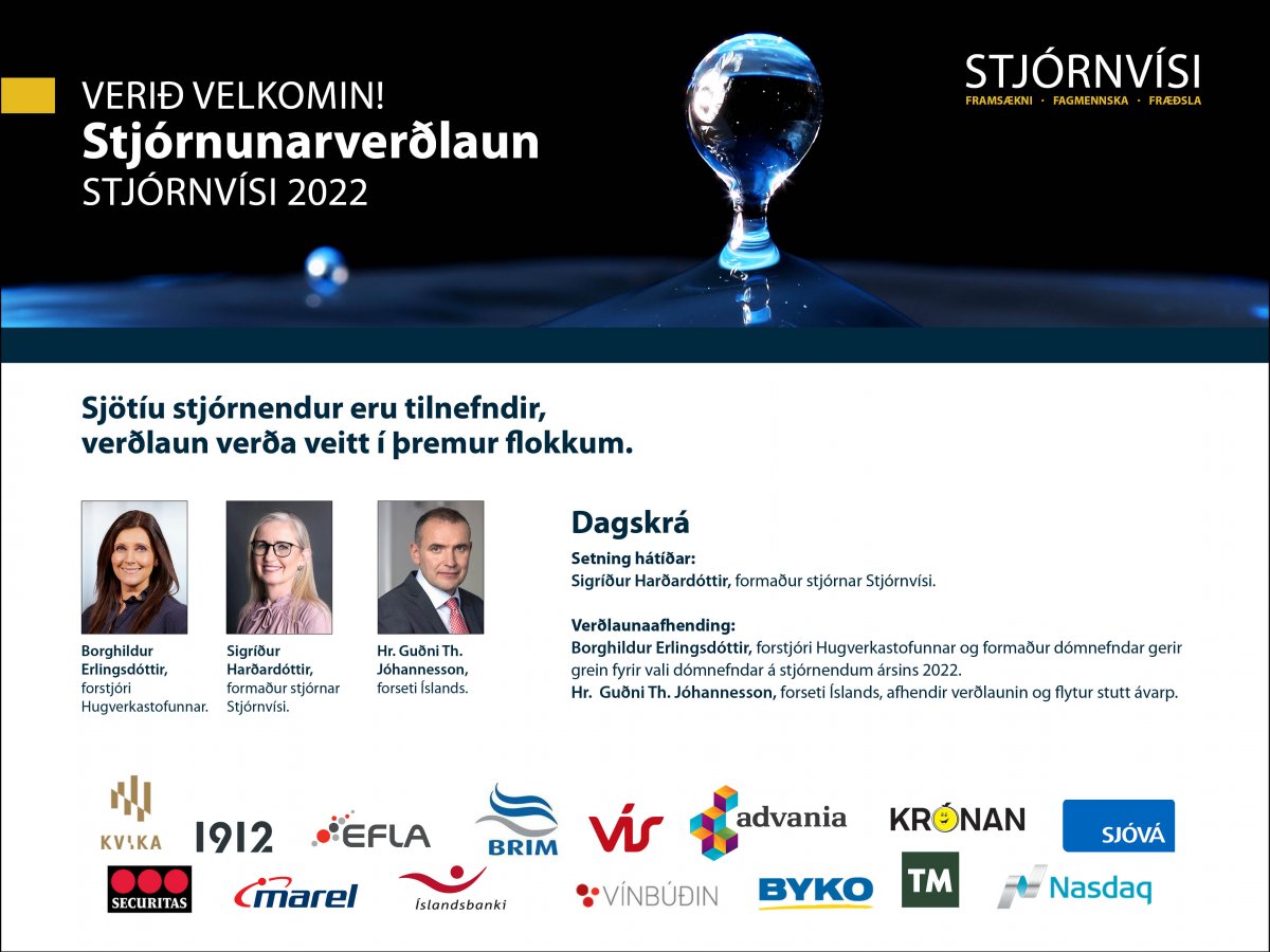 Hér má sjá lista yfir þá sem eru tilnefndir 2022. Í tilefni afhendingar Stjórnunarverðlauna Stjórnvísi 2022 þann 15.febrúar nk. býður Stjórnvísi til hátíðarmóttöku á Grand hótel, Háteig, kl. 16.00 til 17:15. Sökum fjöldatakmarkana er ekki hægt að bjóða öllum þeim sem eru tilnefndir til hátíðarinnar eins og áður hefur verið gert en við hvetjum alla eindregið til að bóka sig og fylgjast með hátíðinni í beinu streymi. Þeir sem mæta á Grand hótel hafa verið boðaðir þangað sérstaklega s.s. forseti Íslands, formaður Stjórnvísi, dómnefnd o.fl.)