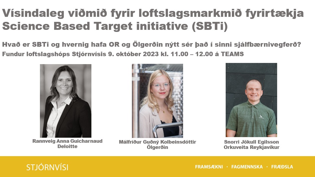 Erindin verða upplýsandi fyrir alla sem huga að þessari vegferð, eða þá sem vilja vita meira um SBTI og hvernig ferlið hefur nýst þeim fyrirtækjum sem hafa fengið markmið sín samþykkt.
